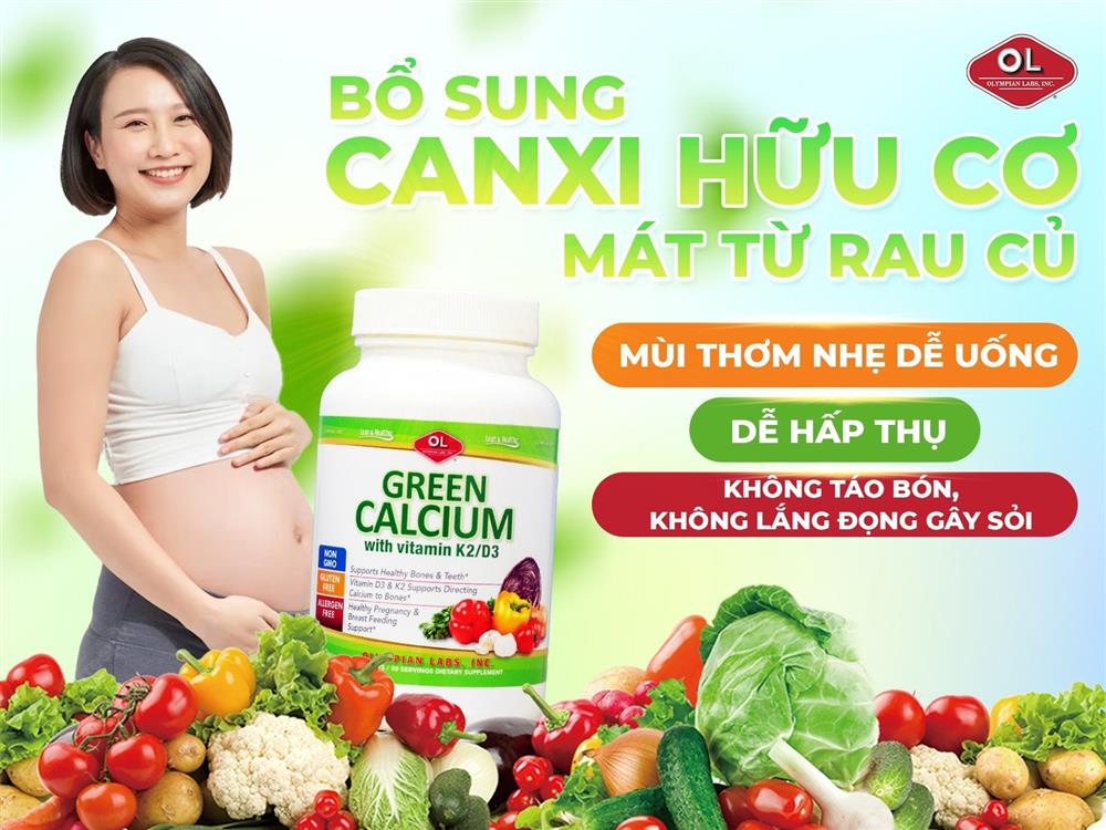 Green Calcium được phát triển đặc biệt cho mẹ bầu với canxi hữu cơ "xanh mát" chiết xuất 100% từ rau củ tự nhiên, dễ hấp thu và không gây nóng trong. Sản phẩm giúp bù đắp canxi thiếu hụt trong thai kỳ, hỗ trợ phát triển xương thai nhi và giảm mệt mỏi cho mẹ.
