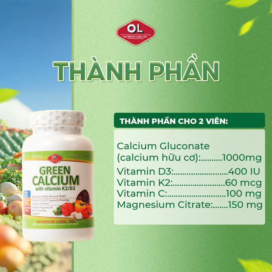 Công thức kết hợp vitamin D3, K2, C và magie tối ưu hóa hấp thu canxi, đưa canxi đúng vị trí cần thiết trong xương thay vì tích tụ mạch máu. Sản phẩm đạt chuẩn GMP Mỹ,, an toàn cho mẹ bầu và trẻ nhỏ. Sản phẩm không phải là thuốc và không có tác dụng thay thế thuốc chữa bệnh.